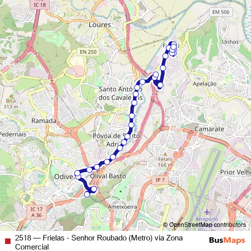 Click here to view the nearest 2518 - Frielas - Senhor Roubado (Metro) via Zona Comercial bus stop.