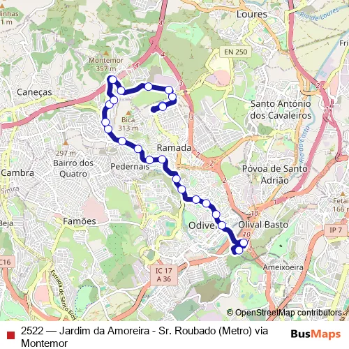 2522 Bus - Jardim da Amoreira - Sr. Roubado (Metro) via Montemor