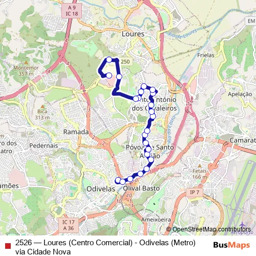Click here to view the nearest 2526 - Loures (Centro Comercial) - Odivelas (Metro) via Cidade Nova bus stop.