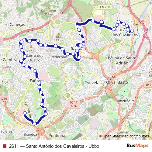 Bus 2611 - Santo António dos Cavaleiros - Ubbo in Lisbon: Stops & Timetable