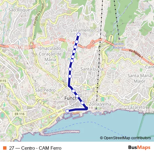 Bus 27 - Centro - CAM Ferro in Funchal: Stops & Timetable
