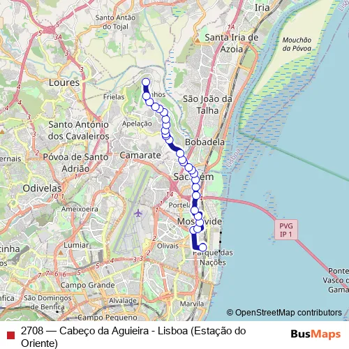 Bus 2708 - Cabeço da Aguieira - Lisboa (Estação do Oriente): Full Schedule in Lisbon