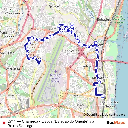 Bus 2711 - Charneca - Lisboa (Estação do Oriente) via Bairro Santiago in Lisbon: Stops & Timetable