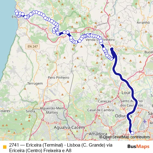 Click here to view the nearest 2741 - Ericeira (Terminal) - Lisboa (C. Grande) via Ericeira (Centro) Freixeira e A8 bus stop.