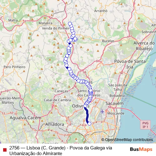 Click here to view the nearest 2756 - Lisboa (C. Grande) - Povoa da Galega via Urbanização do Almirante bus stop.
