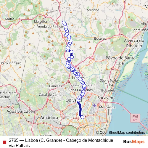 Bus 2765 - Lisboa (C. Grande) - Cabeço de Montachique via Palhais in Lisbon: Stops & Timetable