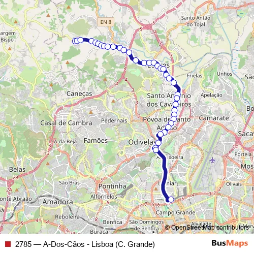 Click here to view the nearest 2785 - A-Dos-Cãos - Lisboa (C. Grande) bus stop.