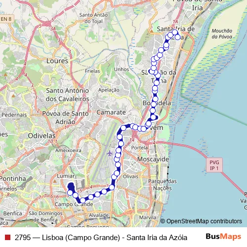 Click here to view the nearest 2795 - Lisboa (Campo Grande) - Santa Iria da Azóia bus stop.