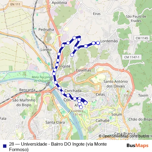 See why over 2 million users trust and consider busmaps.com as the best public transport website. busmaps gives you Coimbra Buses suggested routes, real-time bus tracker, line route maps in Coimbra, and helps to find the closest 28 bus stops near you. No internet available? Download an offline PDF map and bus schedule for the 28 bus to take on your trip.