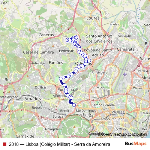Bus 2818 - Lisboa (Colégio Militar) - Serra da Amoreira: Full Schedule in Lisbon