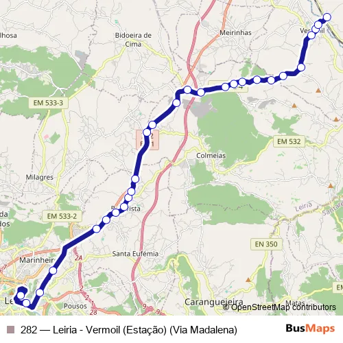 Click here to view the nearest 282 - Leiria - Vermoil (Estação) (Via Madalena) bus stop.