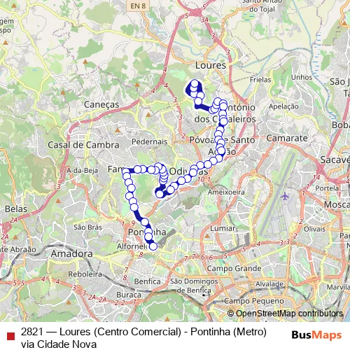2821 (Loures (Centro Comercial) - Pontinha (Metro) via Cidade Nova) Bus in Lisbon