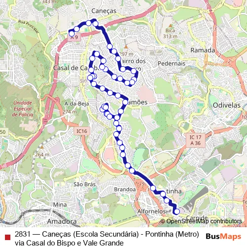 Bus 2831 - Caneças (Escola Secundária) - Pontinha (Metro) via Casal do Bispo e Vale Grande Schedule in Lisbon