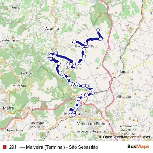 Bus 2911 - Malveira (Terminal) - São Sebastião Schedule in Mafra