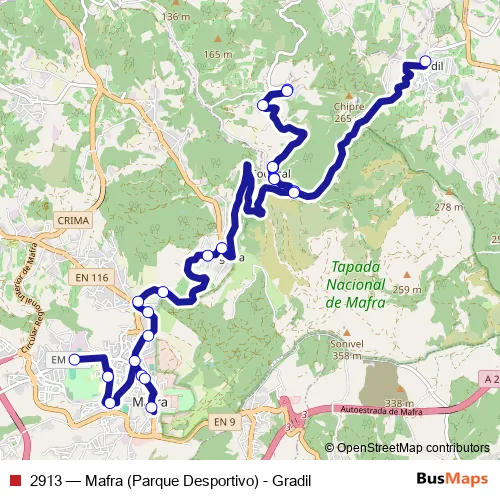 Bus 2913 - Mafra (Parque Desportivo) - Gradil in Mafra: Stops & Timetable