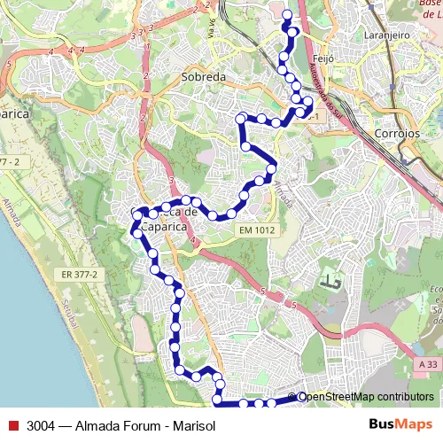 Click here to view the nearest 3004 - Almada Forum - Marisol bus stop.