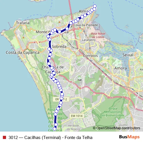 Click here to view the nearest 3012 - Cacilhas (Terminal) - Fonte da Telha bus stop.