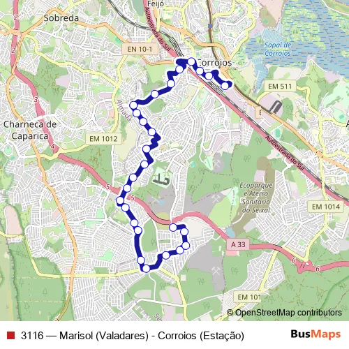 Bus 3116 - Marisol (Valadares) - Corroios (Estação) in Lisbon: Stops & Timetable