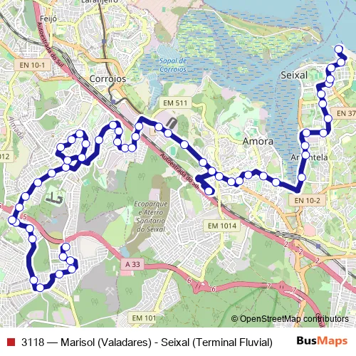 See why over 2 million users trust and consider busmaps.com as the best public transport website. busmaps gives you Seixal Buses suggested routes, real-time bus tracker, line route maps in Seixal, and helps to find the closest 3118 bus stops near you. No internet available? Download an offline PDF map and bus schedule for the 3118 bus to take on your trip.