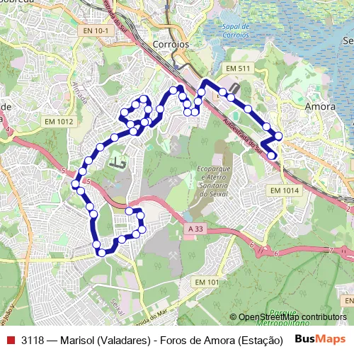 Bus 3118 - Marisol (Valadares) - Foros de Amora (Estação) Schedule in Seixal