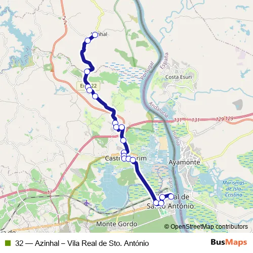 Bus 32 - Azinhal – Vila Real de Sto. António in Castro Marim: Stops & Timetable