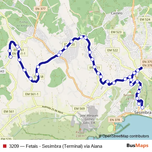 Click here to view the nearest 3209 - Fetais - Sesimbra (Terminal) via Aiana bus stop.