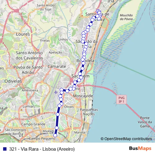 Bus 321 - Via Rara - Lisboa (Areeiro) in Lisbon: Stops & Timetable