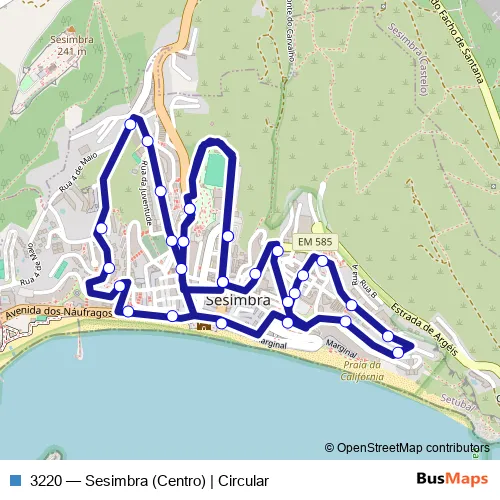 Click here to view the nearest 3220 - Sesimbra (Centro) | Circular bus stop.