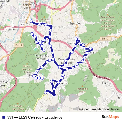 See why over 2 million users trust and consider busmaps.com as the best public transport website. busmaps gives you Braga Buses suggested routes, real-time bus tracker, line route maps in Braga, and helps to find the closest 331 bus stops near you. No internet available? Download an offline PDF map and bus schedule for the 331 bus to take on your trip.
