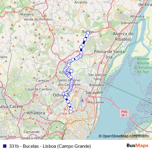 See why over 2 million users trust and consider busmaps.com as the best public transport website. busmaps gives you Lisbon Buses suggested routes, real-time bus tracker, line route maps in Lisbon, and helps to find the closest 331b - Bucelas - Lisboa (Campo Grande) bus stops near you. No internet available? Download an offline PDF map and bus schedule for the 331b - Bucelas - Lisboa (Campo Grande) bus to take on your trip.