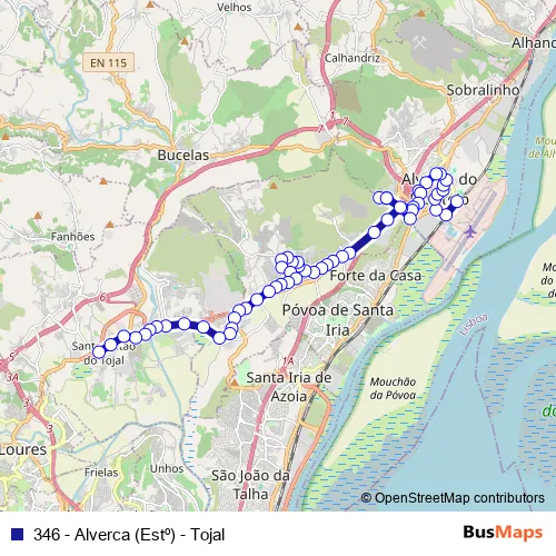 346 - Alverca (Estº) - Tojal bus Route Map