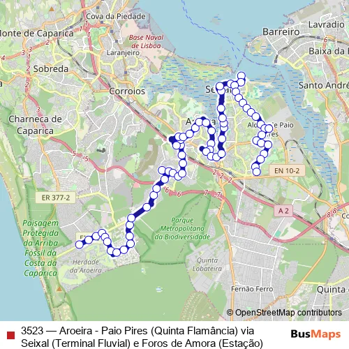 3523 Bus - Aroeira - Paio Pires (Quinta Flamância) via Seixal (Terminal Fluvial) e Foros de Amora (Estação)