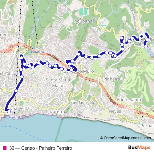 See why over 2 million users trust and consider busmaps.com as the best public transport website. busmaps gives you Funchal Buses suggested routes, real-time bus tracker, line route maps in Funchal, and helps to find the closest 36 bus stops near you. No internet available? Download an offline PDF map and bus schedule for the 36 bus to take on your trip.