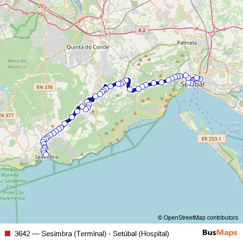 Bus 3642 - Sesimbra (Terminal) - Setúbal (Hospital) Schedule in Setubal