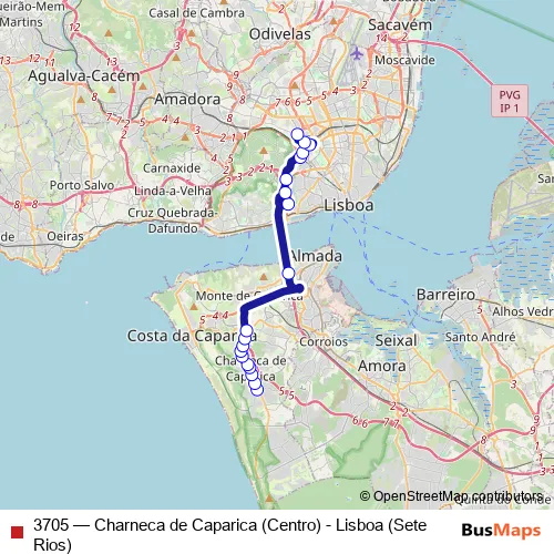 See why over 2 million users trust and consider busmaps.com as the best public transport website. busmaps gives you Lisbon Buses suggested routes, real-time bus tracker, line route maps in Lisbon, and helps to find the closest 3705 bus stops near you. No internet available? Download an offline PDF map and bus schedule for the 3705 bus to take on your trip.