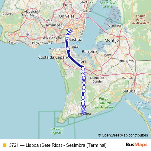 Bus 3721 - Lisboa (Sete Rios) - Sesimbra (Terminal) Schedule in Seixal