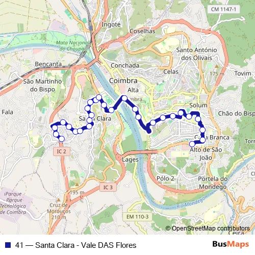 See why over 2 million users trust and consider busmaps.com as the best public transport website. busmaps gives you Coimbra Buses suggested routes, real-time bus tracker, line route maps in Coimbra, and helps to find the closest 41 bus stops near you. No internet available? Download an offline PDF map and bus schedule for the 41 bus to take on your trip.