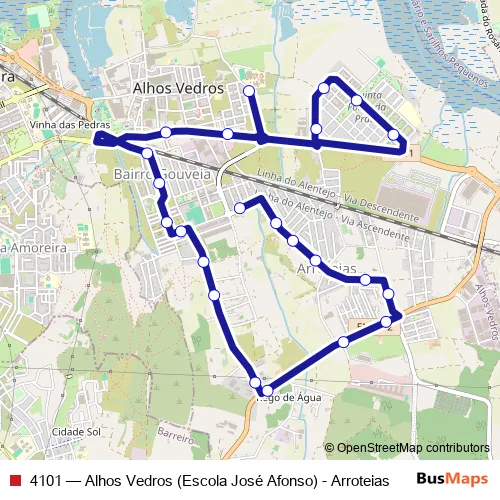 Bus 4101 - Alhos Vedros (Escola José Afonso) - Arroteias in Moita: Stops & Timetable