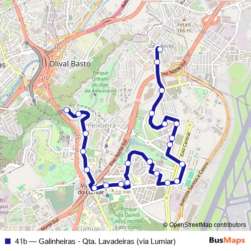 Click here to view the nearest 41b - Galinheiras - Qta. Lavadeiras (via Lumiar) bus stop.