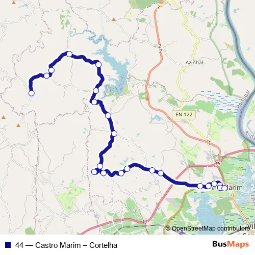 The first stop of the 44 bus route is Cortelha and the last stop is Castro Marim (Finanças). 44 (Castro Marim – Cortelha) is operational during on weekdays.