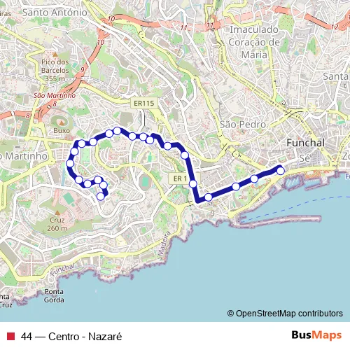 Bus 44 - Centro - Nazaré in Funchal: Stops & Timetable