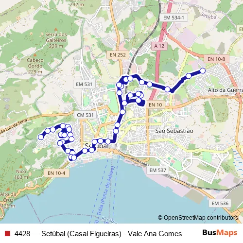 See why over 2 million users trust and consider busmaps.com as the best public transport website. busmaps gives you Setubal Buses suggested routes, real-time bus tracker, line route maps in Setubal, and helps to find the closest 4428 bus stops near you. No internet available? Download an offline PDF map and bus schedule for the 4428 bus to take on your trip.