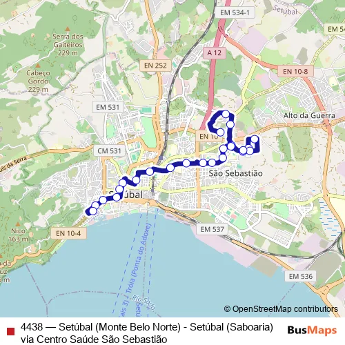 Bus 4438 - Setúbal (Monte Belo Norte) - Setúbal (Saboaria) via Centro Saúde São Sebastião Schedule in Setubal
