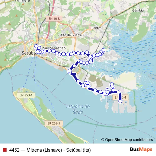See why over 2 million users trust and consider busmaps.com as the best public transport website. busmaps gives you Setubal Buses suggested routes, real-time bus tracker, line route maps in Setubal, and helps to find the closest 4452 bus stops near you. No internet available? Download an offline PDF map and bus schedule for the 4452 bus to take on your trip.