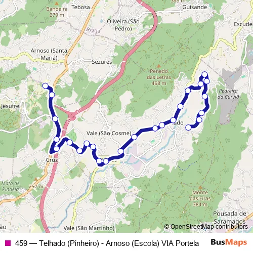 Bus 459 - Telhado (Pinheiro) - Arnoso (Escola) VIA Portela: Full Schedule in Vila Nova de Famalicao