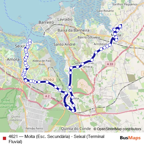 4621 Bus - Moita (Esc. Secundária) - Seixal (Terminal Fluvial)