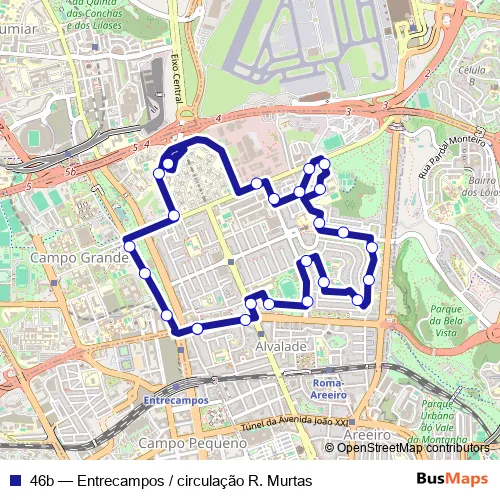 Click here to view the nearest 46b - Entrecampos / circulação R. Murtas bus stop.