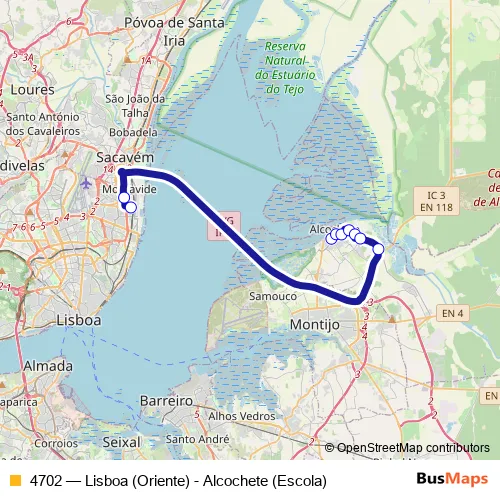 Bus 4702 - Lisboa (Oriente) - Alcochete (Escola): Full Schedule in Alcochete