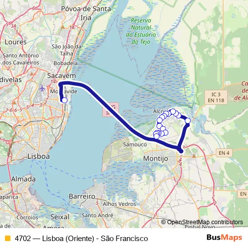 Click here to view the nearest 4702 - Lisboa (Oriente) - São Francisco bus stop.