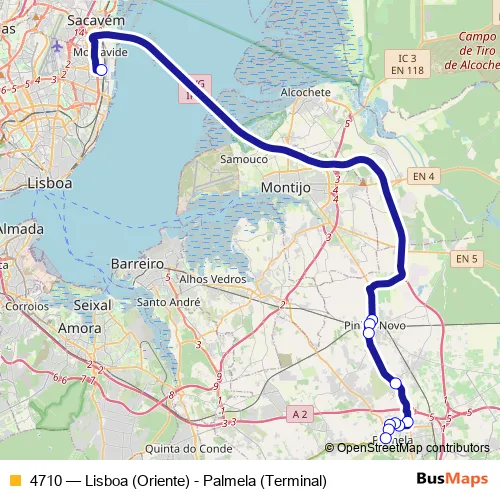 Bus 4710 - Lisboa (Oriente) - Palmela (Terminal): Full Schedule in Palmela